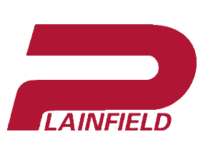 The flag is white with the word PLAINFIELD written in maroon, where the P