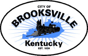 The seal depicts the outline of Kentucky in bue, with a steam locomotive overlaying Kentucky. On the map of Kentucky is the black shape of Bracken County, which Brookeville is the county seat of. A series of blue rays radiate from behind Kentucky. Abovve is the city's name, and under the state is the state name and city's founding year.