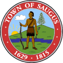 tree-topped hill. In a blue ring around the seal is written the town name and dates 1629 and 1815. Saugus is in Essex County.