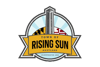 features a gold banner bearing the words "TOWN OF" in small, grey, capital letters; "RISING SUN" below that in large, black, capital