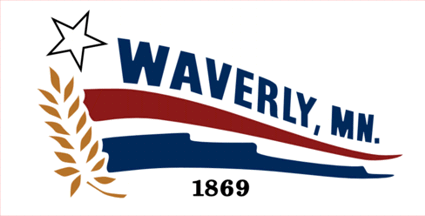 The flag of Waverly MN can be partially seen in this 2011 newspaper article: http://www.hjblogs.com/waverly-has-new-council-member-and-mayor/