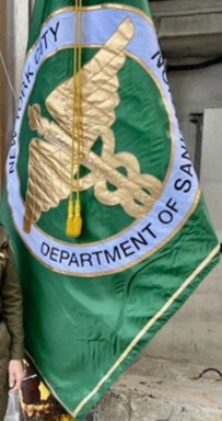 "The flag is used for all departmental ceremonies and parades in which Sanitation is represented. Unfortunately, I do not have readily available documentation or by-laws pertaining to the flag's adoption."