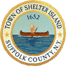 The Town of Shelter Island, Suffolk County, NY, is the town seal on a white field. A portion of the flag is visible at www.newsday.com/media/photo/2003-07/8811334.jpg