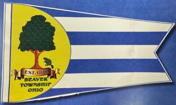 The flag is in swallowtail design similar to the Ohio flag, only with the upper and lower edges being wavy as opposed to being straight. The flag is made up of seven horizontal bars of alternating blue and white. On the hoist side is a yellow half circle. Inside the circle is a tree with a green beaver next to it, which is what the township is named after. Under the tree is a golden banner with the establishment year on it. Under the banner is the township and state names.