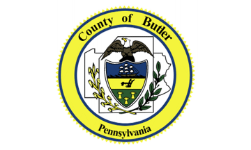 flag has a yellow outer ring with the words County of Butler in dark blue