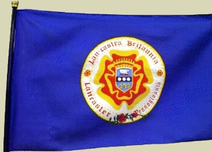 In the end, Lancaster adopted a blue flag with a white center displaying the coat of arms of old Lancaster, England. The coat of arms displays the lion of England on a red field with the lilies of France upon a blue field. The shield rests upon the open petals of the rose. I am seeing conflicting descriptions from other newspaper articles, but this is what I think is what MIGHT have been agreed upon, and today it is different. Do not take what I think happened with its design to heart. It seems to have been adopted in April, but only first flown on the morning of 12 July 1907, the flag itself standing at 10x15 feet (translating into 2:3 proportions).