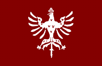 This is a red flag bearing a Polish white eagle and was redrawn (and slightly poorly traced) from a flag in the collection of Nick Artimovich. I saw someone referring to it as an "Polish American" flag before.