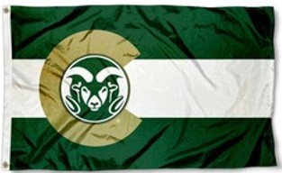 here, and here, this flag features the ram's head logo (complete with a ® registered trademark) and the school's name in white beneath it, all on a green field.