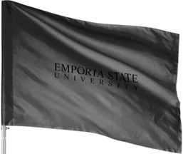 It is a yellow flag with a large stylized letter E, with rounded "C"-shape, and a sharp central bar, presumably representing the school team, the Hornets. Below is written EMPORIA STATE UNIVERSITY in very dark blue or black.