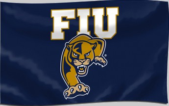 There used to be an old flag, which was the logo (files.graphiq.com) over a white horizontal background with the letters "FIU" in black capitals, as seen here (first flag from left to right):