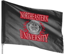 Its flag is a horizontal crimson flag featuring the logo and the University's name in the middle, as seen here: www.cps.neu.edu