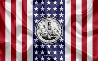 The flag is red with the seal centered in gold.