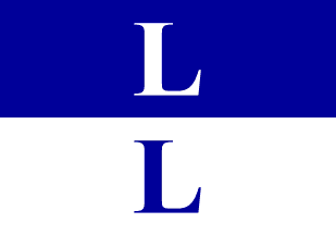 Flag divided from lower hoist to upper fly, white over blue, with the letters "C" and "L" counterchanged.
