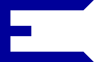 White field bearing blue five-pointed star within a blue ring, a red sans serif initial “E” in the centre of said star (national colours). We do not see the item completely – it should be a swallowtail. It would be nice to have this confirmed by a house flag book or any other source going beyond the black-and-white picture linked to, as the present line of conjecture is rather thin.