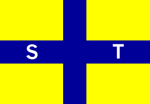 cross, the letters S and T in white on the horizontal arm. The image here shows