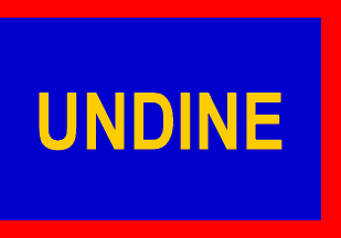 Founded 1856. The earlier chart shows a blue flag with a red border and the word UNDINE in gold letters. The other shows a blue flag with a gold chevron, point at the hoist. I believe the second is the current flag; it matches the design on the oar blades used by the club. A stained glass window in the club house shows the chevron flag crossed in saltire with a variant on the word flag, but without the border and with the name spelled VNDINE. See www.undine.com/history.html. Joe McMillan, 31 December 2002