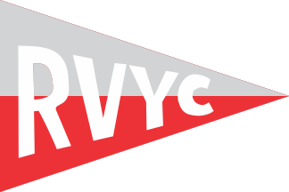 Burgee: Pennant circa 2:3. Horizontally divided grey above red and charged with the white capital letters RVYC declining towards the fly point.