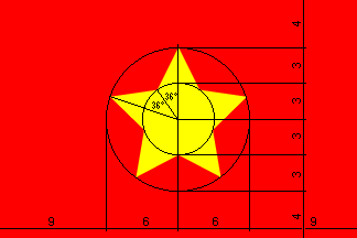 Placement of star: The yellow star has 5 acute angles and 5 obtuse angles, its centre falls in the centre of the flag, one acute angle points directly upwards along the vertical median of the flag.