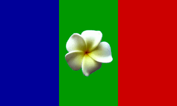 Another flag used by the Cham diaspora is promoted by the Council for the Socio-Cultural Development of Champa, another USA-based NGO. It is a blue-green-red vertical tricolor, with the depiction of a yellowish-white flower with five petals in center of green field The flag was presented in San Jose, California, on 15 July 2017, at the celebration of the 10th anniversary of the organization. The video from the event, which is available here shows the flag introduction scene, where two copies of it were brought to the stage and unfurled. Prior to the scene, a large image (computer graphics) of the flag was shown @0:23-0:30, with the flower looking as if copied from a photo. However, the flower looks the same on the real flags, as visible throughout the interval @1:59-2:24 and @2:30-6:21, with the graphics repeated @2:24-2:30.