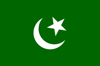 The orientation of device may also resemble the one from the flag of Pakistan, although the star is larger here as well and is not necessarily pointing towards the corner. Rows of flags with this design, combined with those of national flags, were photographed at the mosque in Phum Soai village near Chau Doc1.