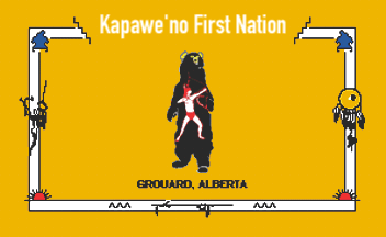 The Kapawe'no First Nation of Northern Alberta is yellow with a standing bear and superimposed on it a native person.