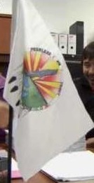 The flag was a white field with the band's emblem centred. Image above based on this photograph.