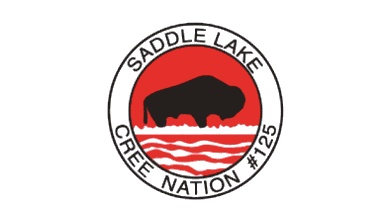 The flag carries the seal on a white field, depicting a buffalo silhouette on