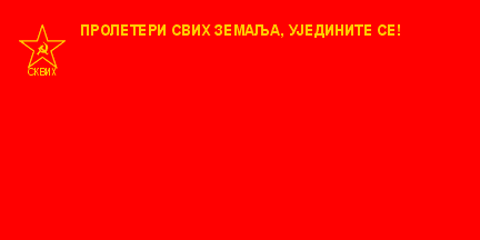 The League of Communists of Bosnia and Herzegovina was member of the League of Communists of Yugoslavia, and the pattern of the flag followed - the only difference being the small initials below the star. In theory the flag with inscriptions in any language of the peoples living in Bosnia and Hrzegovina could be used, though in practice only two were used - in Serbo-Croatian, either in Latin or Cyrillic script.