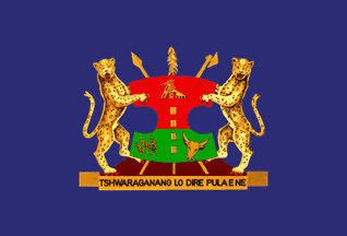 pile reversed charged with a ratel statant proper, in the canton a demi-leopard gardant also proper, holding in its forepaws a gold Tswana