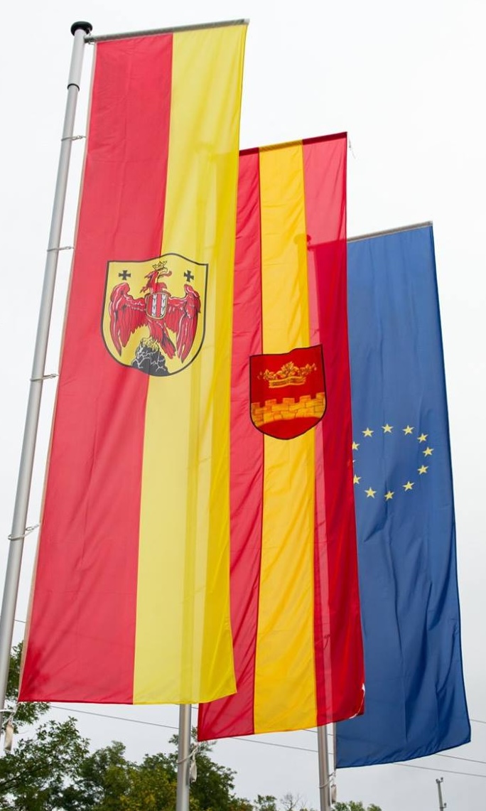 The choice of colours (red/gold) is intended to reflect the region's affiliation with Burgenland."