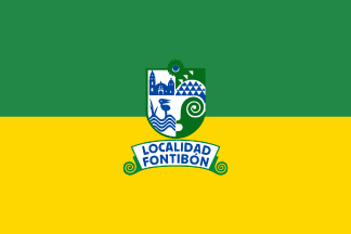 Through inquiry to the residents, it became known that the flag of Fontibón as an independent Municipality until 1954 was apparently a horizontal bicolor of green over yellow. Green signifies the large estates with their crops, lagoons, rivers and large savanna expanses of the high plateau; yellow signifies the rising sun. The flag was officially adopted through Local Agreement No. 004 on 28 September 2001 in its First Article, in effect on 23 October.