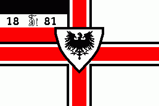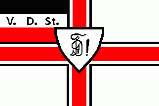 Vereine Deutscher Studenten Berlin und Charlottenburg (Clubs of German Students Berlin and Charlottenburg) is actually just one club. The fraternity still exists which branches all over Germany. The Berlin and Charlottenburg branch was established on 18 January 1881. The flag (see left image above) of the rowing section was white and parted by a red centred cross cotized white-black. Over all on centre was a white shield displaying the black Prussian eagle.