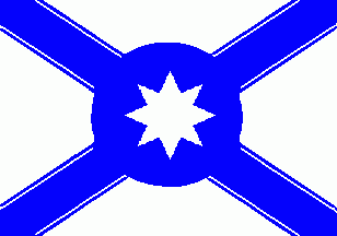 The flag was white parted by a cotised blue saltire with white 8-point star with broad blue fimbriation on centre.