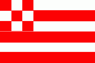 It was a 6-stripes flag parted by alternating horizontal white and red stripes. The canton was chequered of 9 squares alternating of red and white.