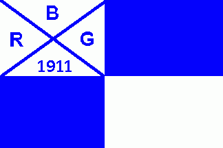 It is a white flag divided by a centred cotized black cross. In the upperhoist quarter there are dotted black capital letters "R.C.G.B." at the top edge of the flag. In the centre of the flag is a yellow shield with a black eagle armed and tongued red (holy roman empire), superimposed by a white inescutcheon with a red Latin cross (archbishopric and electorate of Trier). In times of establishment it seems to be a rather conservative club. The pattern of the flag is obviously inspired by the imperial German naval flag with the coat of arms of Boppard instead and the abbreviation of the clubs name in the canton.