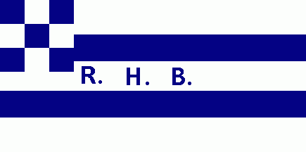 The white flag had a dark blue inscription "R.H.B." between two dark blue horizontal stripes. The canton was chequered of nine of dark blue and white.