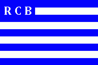 It was a 13-stripes flag parted by alternating blue and white horizontal stripes. On blue canton was a white inscription "RCB".