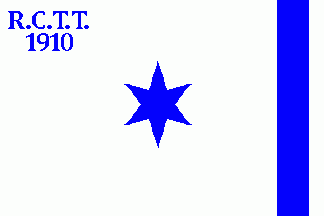 The flag was white. On uppermost was a blue centred inscription "R.C.T.T."(1st line) "1910"(2nd line).