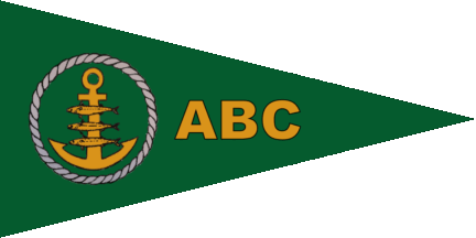 The pennant is green. On hoist is a yellow anchor superimposed by the three fish from the city arms of Aabenraa, also in yellow. The whole is surrounded by a circular white rope. On fly is a yellow inscription „ABC“.
