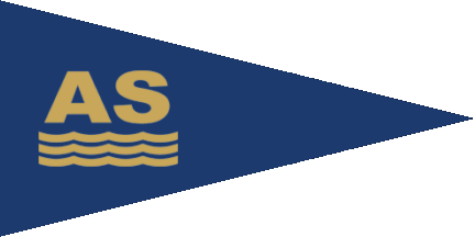 The pennant is blue with yellow inscription "AS" on hoist above from three yellow wavy lines.