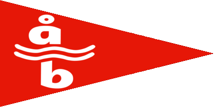 The pennant is red, at hoist is a white swan swimming to hoist over white waves, at fly are white initials "A.B.".