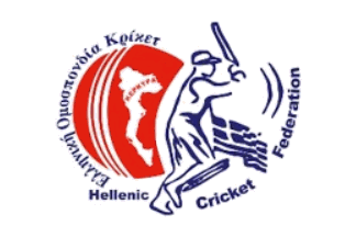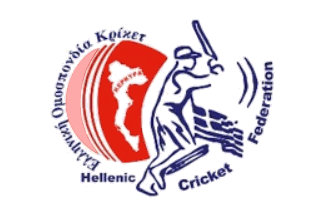 The flag of the Hellenic Cricket Federation is white with the federation's emblem in the center.