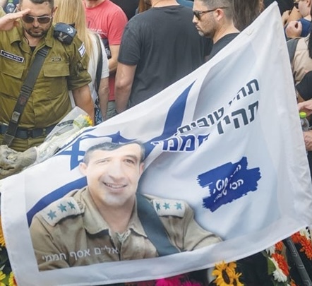 image located by Esteban RiveraCommemorative flag in remembrance of IDF Lt. Colonel Asaf Hamami, killed in action on October 7, 2023,