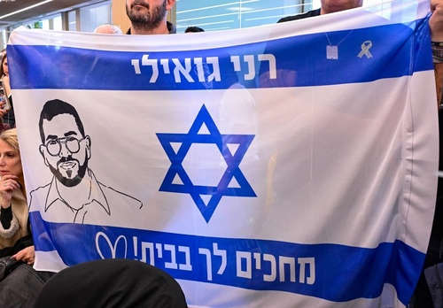 Israel, among them Bar Kupershtein (an IDF soldier on leave when taken captive), who holds an Israeli flag