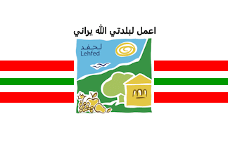 A white flag with a red-white-green-white-red stripe across the center and the logo overlain on that in the center.