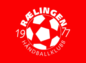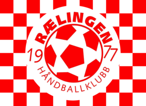 The flags of Rælingen HK (Rælingen Håndballklubb) from Fjerdingby in Rælingen Municipality are red or chequered red and white with the badge centered.