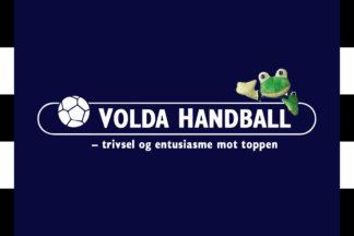 The flags of Volda HK (Volda Håndballklubb) from Volda, Møre og Romsdal, Norway are dark blue or near-black with the logo centered. A variety with a bordure on the hoist and fly was also found.