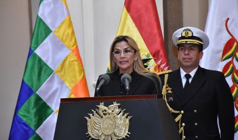 The flag of the Patujú flower is a flag used at official events of the Bolivia government, which shows Bolivia's national flower. The latter represents the indigenous peoples of Eastern Bolivia and was used as a symbol by the opponents of Evo Morales in that area of the country. It was adopted for government use in 2019-2020 by the government of President Jeanine Áñez; and with limited use during the term of Luis Arce.