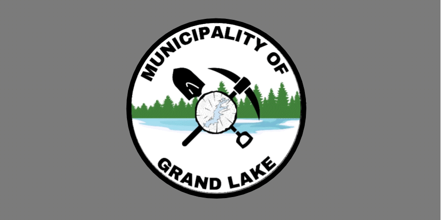 The new Municipality of Grand Lake uses a gray flag with the municipal logo