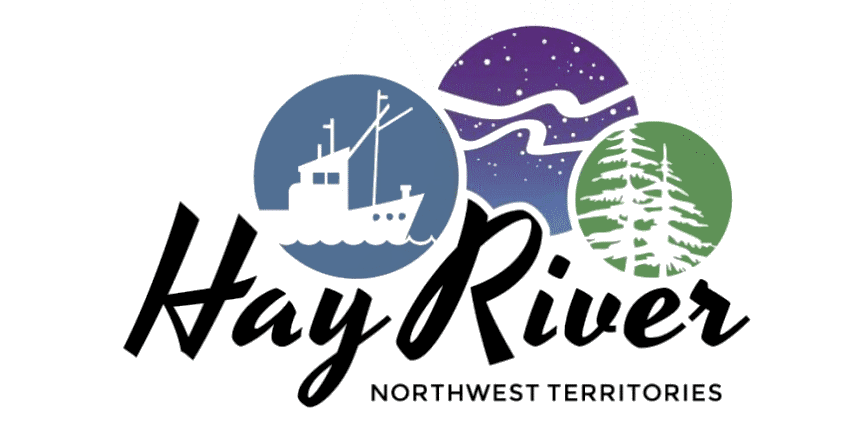 Standing at the mouth of the Hay River on Great Slave Lake, the town is a harbour for water transportation in the western Arctic to the Beaufort Sea. The community also has a commercial fishing industry and hosts a Canadian Coast Guard base. The blue eight-spoked circle represents a ship’s wheel, symbolizing the community’s nautical trade. The “H” and “Hub of the North” reflect Hay River’s role as a centre of commerce in this area of the Northwest Territories. Hay River also is a terminus of the Canadian National Railway; the Mackenzie Highway, an all-weather, uninterrupted road from the south, ends here; and the town has an airport with daily flights. The arrow points north and the zigzag lines represent the northern lights (aurora borealis).